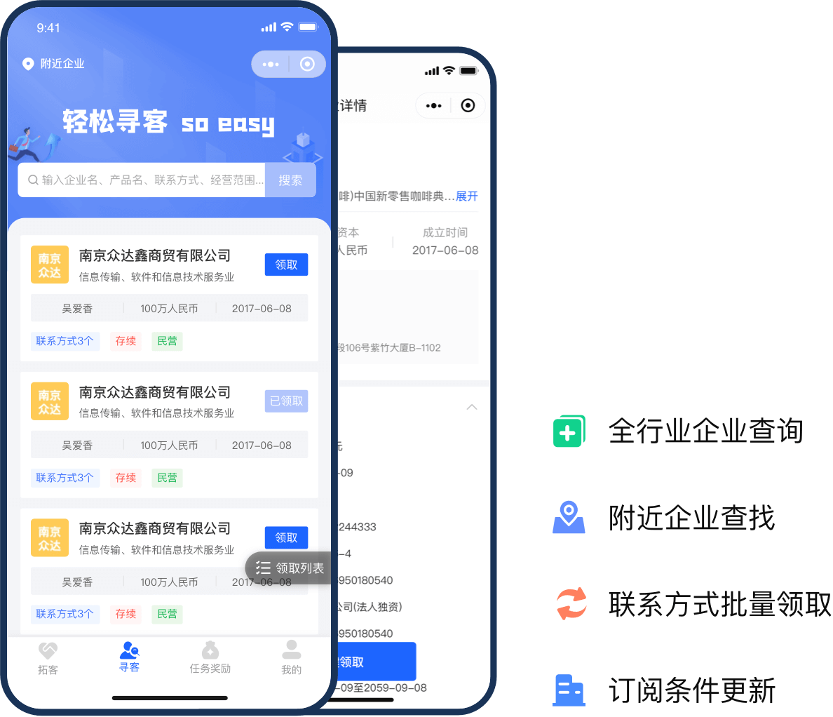 通过筛选、推荐、订阅等拓客方式,精准找到海量优质客