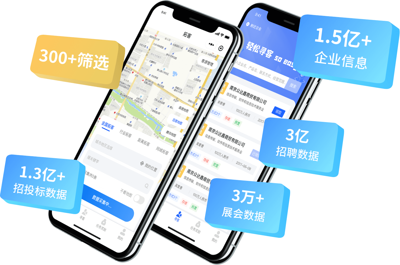 涵盖企业、展会、招投标、店铺等多行业客户类型,支持您